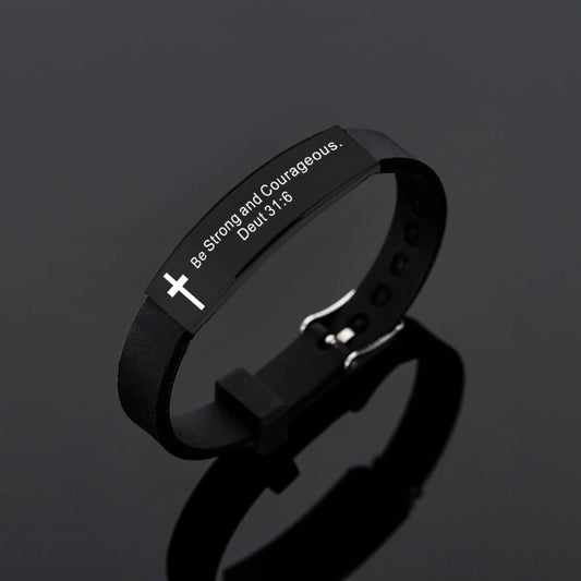 Quote Religious Cross Jesus Scripture Christian Bible Verse Inspirational Faith Silicone Bracelets for Men Jewelry